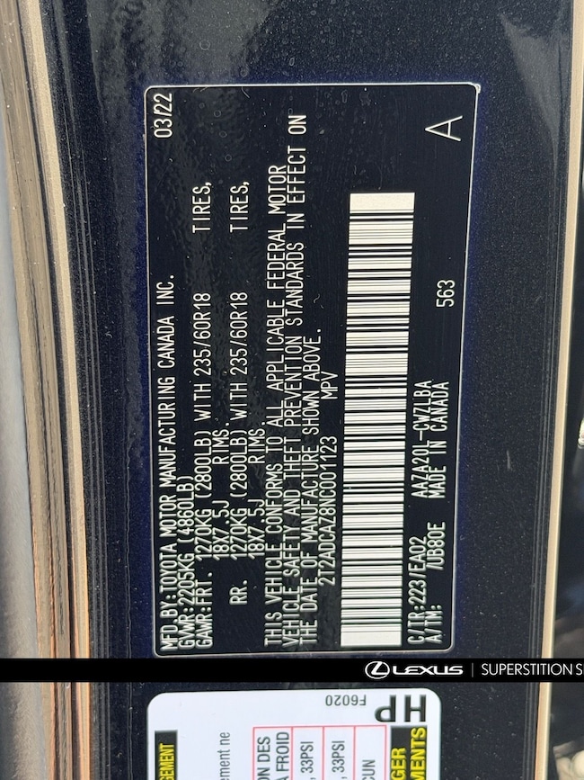 - VIN : 2T2ADCAZ8NC001123