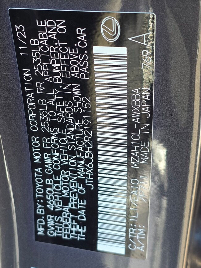 - VIN : JTHX6JBH2R2191152