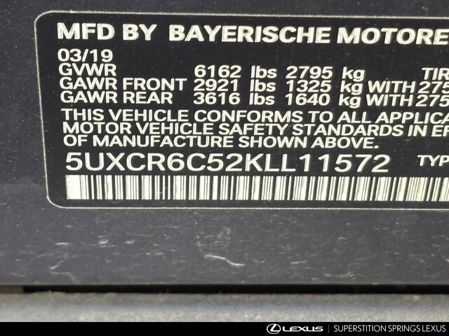 - VIN : 5UXCR6C52KLL11572