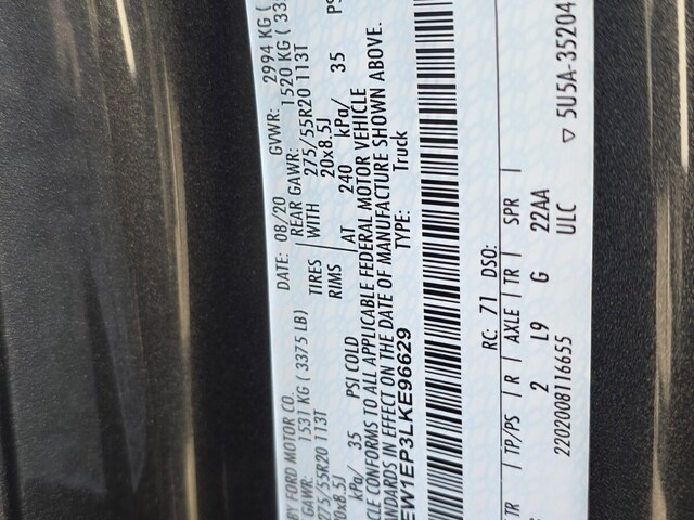 - VIN : 1FTEW1EP3LKE96629